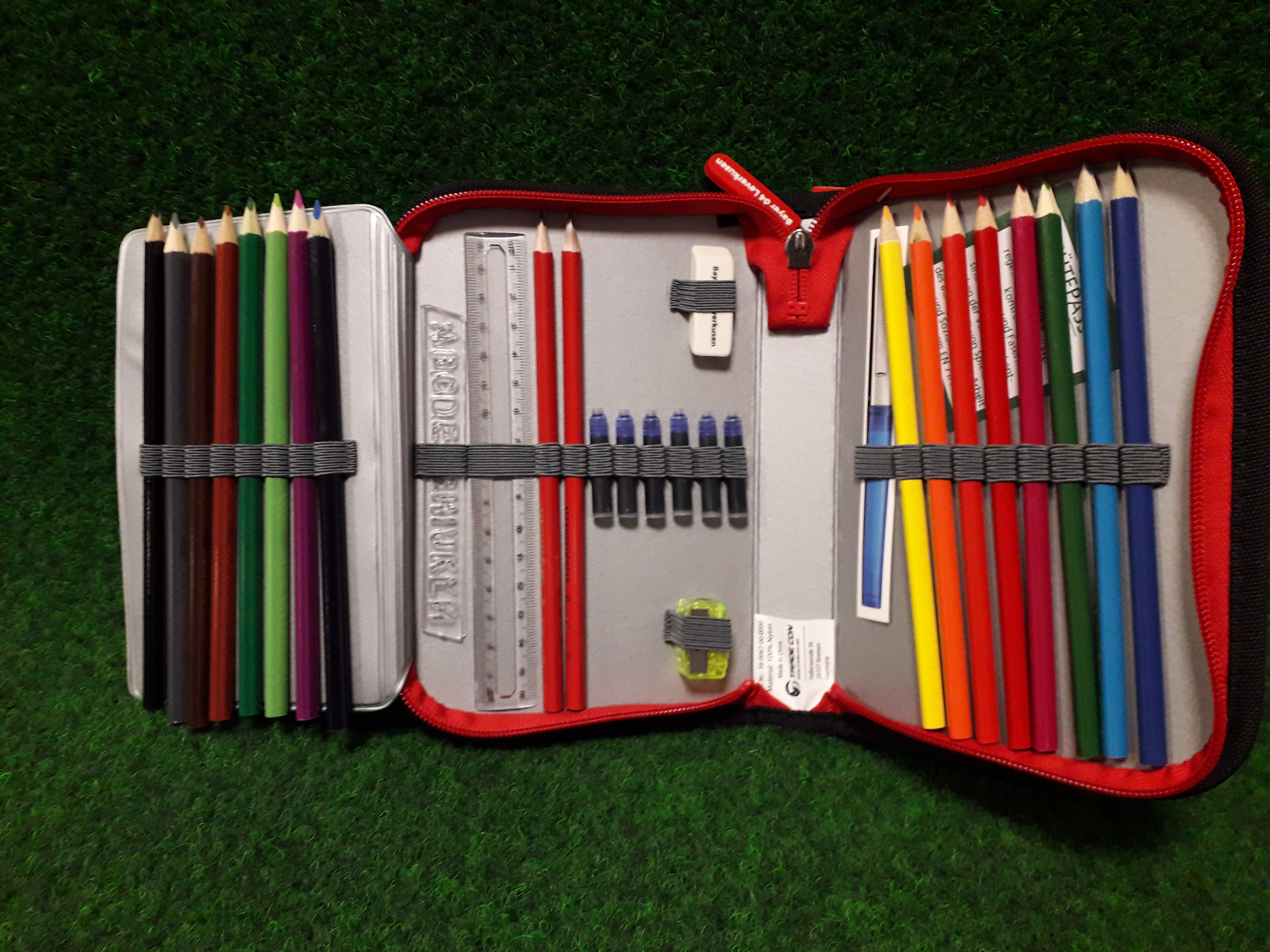 Beginne die Schule mit deinem Lieblingsverein. Mit deinem neuen Schuletui bist du bestens ausgerüstet: 16 Buntstifte, 2 Bleistifte, 1 Lineal, 1 Spitzer, 1 Radiergummi, 6 Füllerpatronen und Buchstabenschablonen kommen in deinem Schuletui bei dir an. Auch ein Stundenplan, in den du deine Fächer individuell eintragen kannst, findest du in einem transparenten Fach.