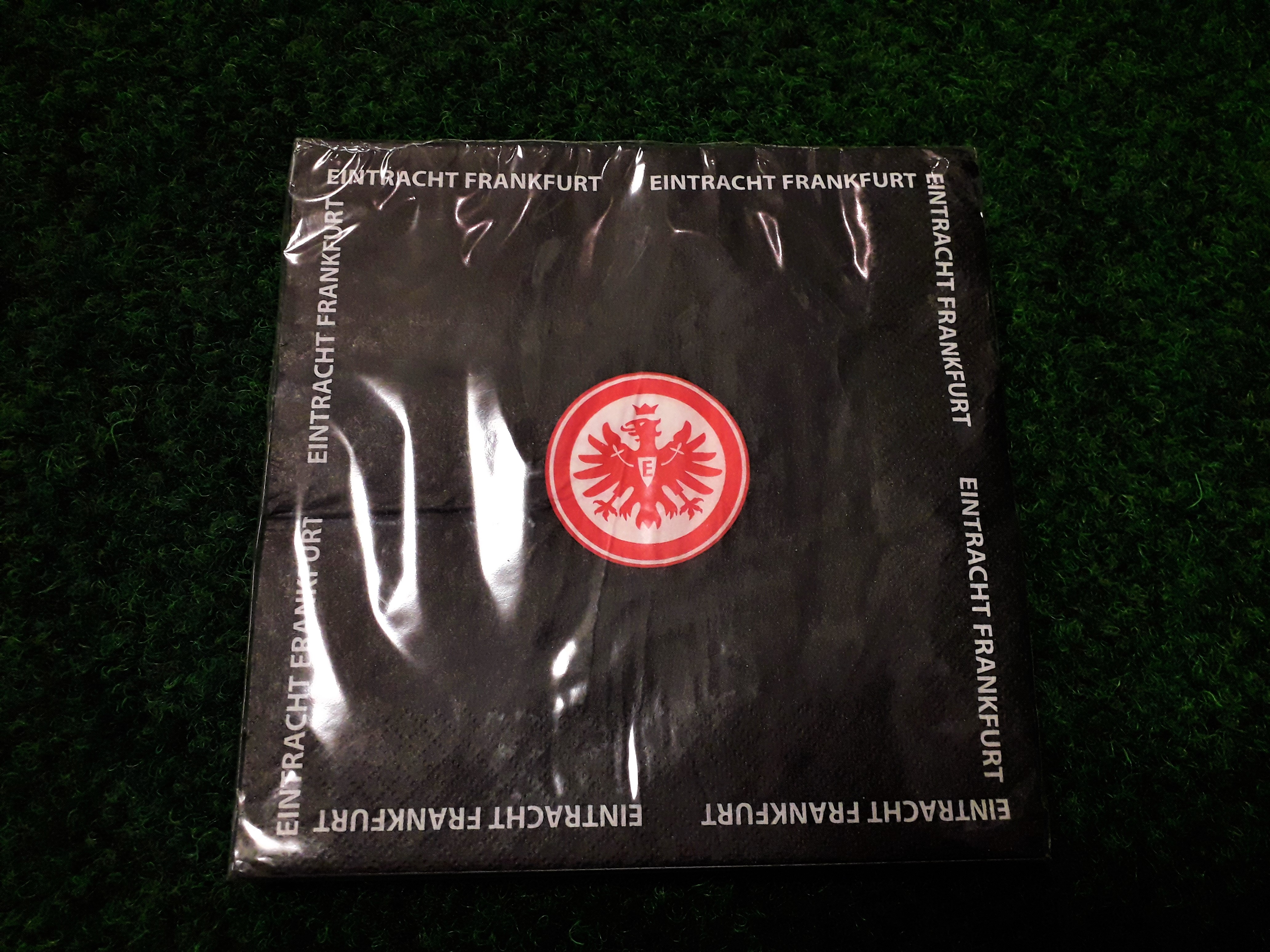 Welchem Eintrachtler fehlt das Servietten Set in der Küche oder auf einer Party noch? Das Set besteht aus 20 schwarzen Servietten mit dem roten SGE-Logo in der Mitte und des mehrfachen Aufdrucks ''Eintracht Frankfurt'' entlang der Kanten.