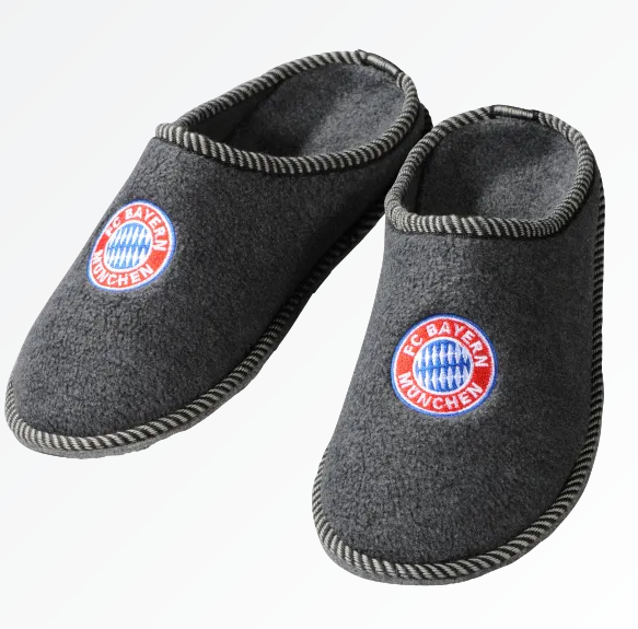 Der FC Bayern Schuh für müde oder kalte Füße. Gemütliche Filz-Pantoffeln mit großem FC Bayern Logo-Stick auf der Oberseite und Stopper-Noppen auf der Sohle.