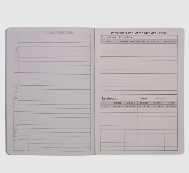 Das DIN A5 Hausaufgabenheft aus 100% recyceltem Material hilft dabei, alle Aufgaben und Termine organisiert zu halten.