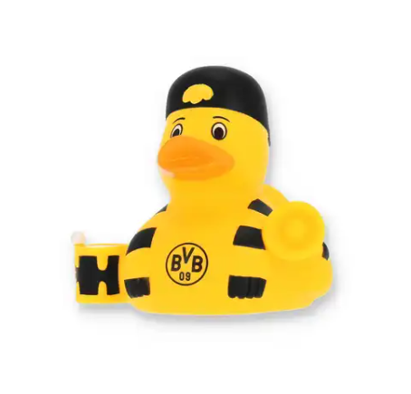 Bring Stimmung in Dein Badezimmer! Mit ihrer Trommel, der lässigen Cap und dem Megaphon ist diese Badeente bestens ausgestattet, um für Borussia Dortmund den Takt anzugeben. Hol Dir jetzt schwarzgelbe Leidenschaft in Dein Badezimmer.