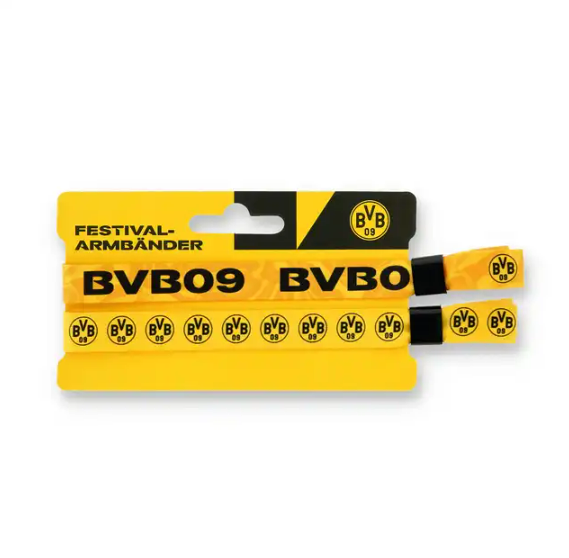 Die BVB-Armbänder sind der perfekte Begleiter für Dein nächstes Festival. Im praktischen 2er-Set kannst Du sie mit Deinen Freunden teilen und einen Stück BVB immer bei Dir tragen. Die gelben Farben mit dem schwarzen "BVB09“-Schriftzug oder dem Logo machen deutlich, für welchen Verein Dein Herz schlägt. Entdecke auch weitere Teile der Festival-Kollektion und mache Deinen Look komplett.