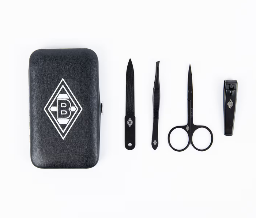 Das Nagelpflege Set von Borussia Mönchengladbach ist das ideale Accessoire für Fans, die nicht nur ihre Liebe zum Verein zeigen wollen, sondern auch auf gepflegte Nägel Wert legen. Das 4-teilige Set kommt in einem praktischen Etui und trägt stolz das Vereinslogo. Inhaltlich überzeugt es mit einer Nagelschere, Pinzette, Nagelpfeile und einem Nagelknipser – alles, was du für eine umfassende Nagelpflege benötigst.