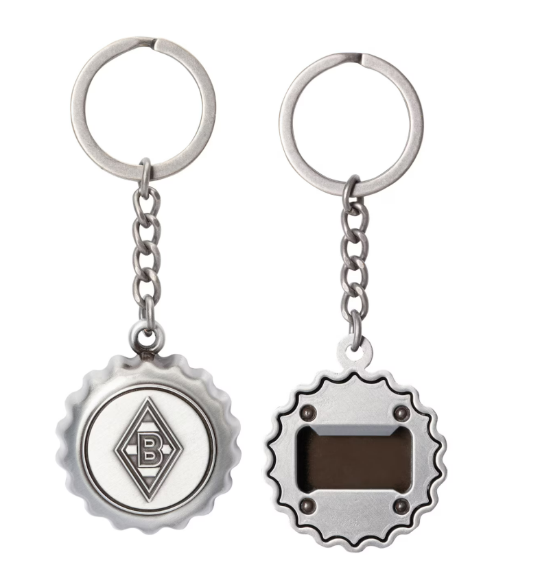 Zeige deine Liebe zum Verein mit dem praktischen Borussia Mönchengladbach Schlüsselanhänger! Dieser Anhänger ist nicht nur ein Blickfang, sondern auch funktional, da er als Kronkorken mit Vereinslogo dient und auf der Rückseite einen Flaschenöffner enthält.