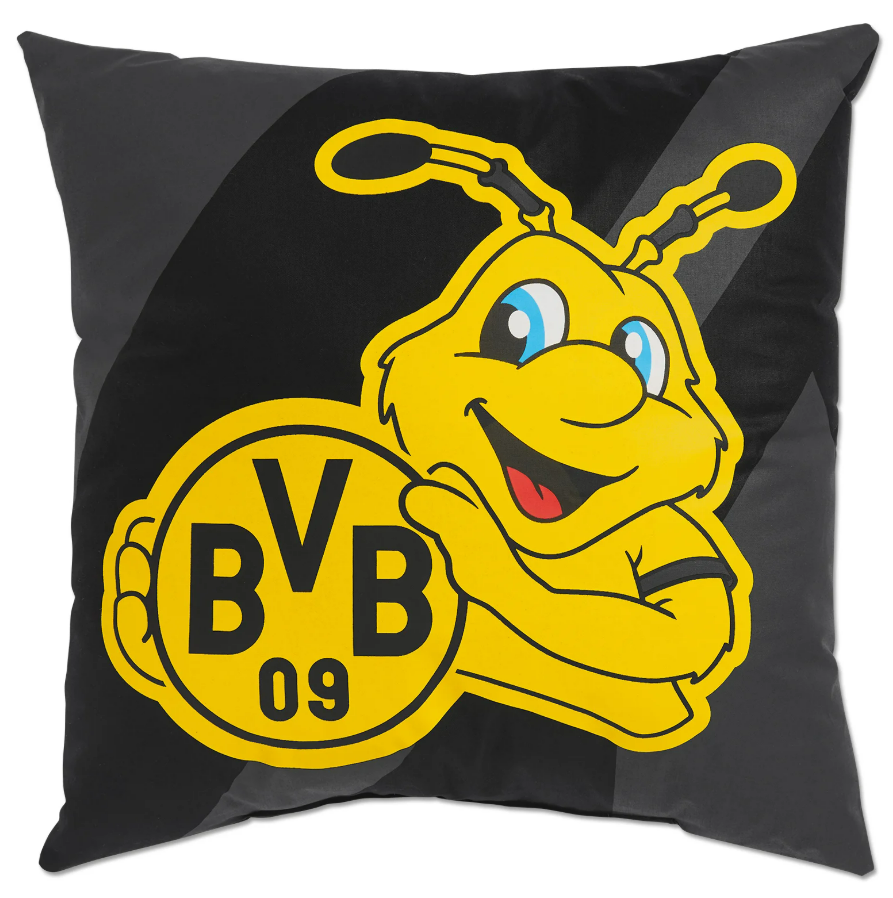 Ein kuscheliger Begleiter für alle kleinen und großen BVB-Fans! Dieses BVB-Kissen zeigt das fröhliche Vereinsmaskottchen EMMA, wie sie das BVB-Logo stolz in den Armen hält. Mit ihrem strahlenden Lächeln und den schwarzgelben Farben sorgt dieses Kissen nicht nur für Bequemlichkeit, sondern auch für echte Borussia-Dortmund-Stimmung. Perfekt für das Sofa, das Bett oder das Kinderzimmer – EMMA bringt Spaß und Fanliebe in jedes Zuhause!