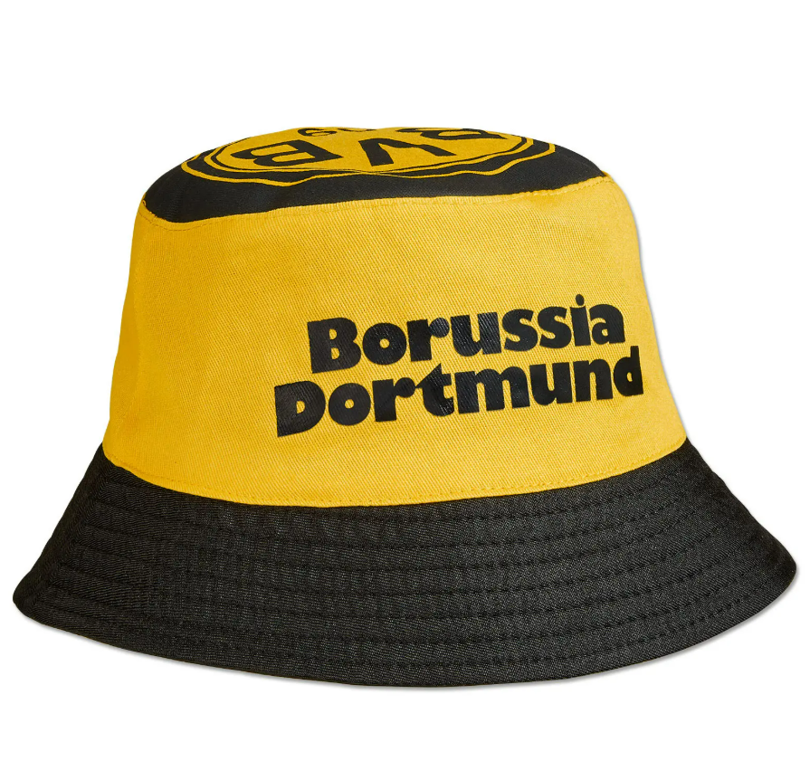 Der BVB Fischerhut im prägnanten schwarzgelben Blockdesign. Mit BVB Emblem auf der Hutkrone und "Borussia Dortmund" Schriftzug auf der Vorderseite, ist ein wahrer Hingucker und lässt jeden deine Vereinsliebe wissen.