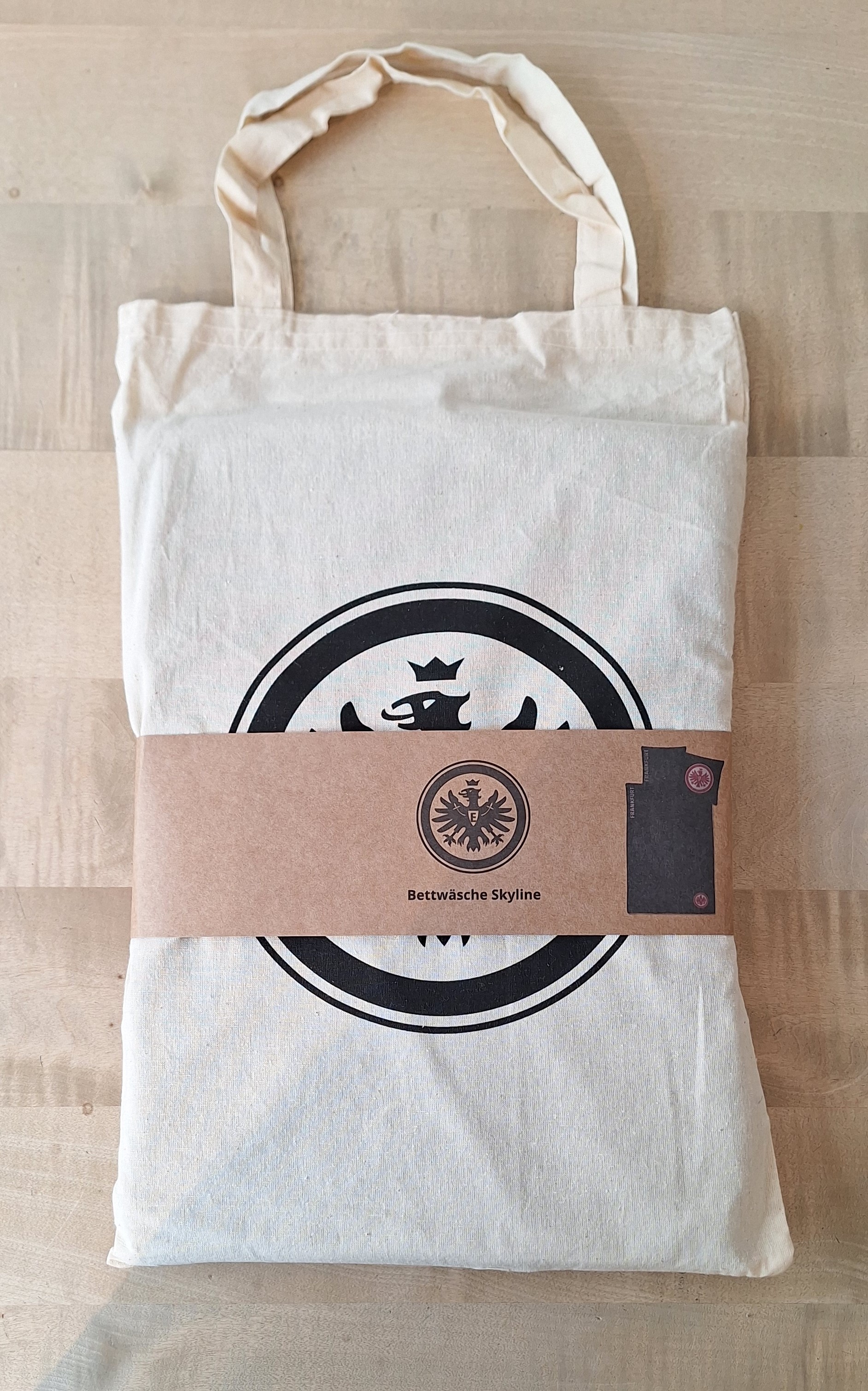 Verleihe Deinem Schlafzimmer mit der exklusiven Eintracht Frankfurt Skyline Bettwäsche einen Hauch von Fußballleidenschaft! Diese hochwertige Bettwäsche ist aus 100 % Bio-Baumwolle gefertigt und bietet Dir ein unvergleichliches Schlafgefühl. Die Bettwäsche zeigt stolz die beeindruckende Skyline von Frankfurt, die mit dem ikonischen Vereinslogo von Eintracht Frankfurt harmonisch kombiniert ist. Dieses Design bringt den Geist der Stadt und die Leidenschaft des Vereins in Dein Zuhause. Natürlich verpackt im Jutebeutel mit Eintracht-Logo.