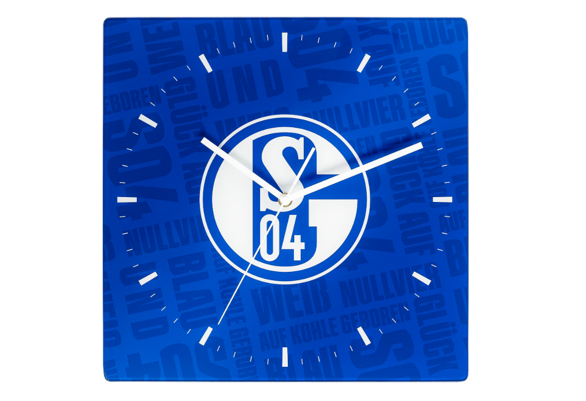Du möchtest den Spielanpfiff nicht verpassen? Mit der modernen S04 Wanduhr aus Glas verlierst Du zuhause die Uhrzeit nicht mehr aus den Augen!