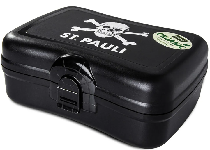 Praktisch, nachhaltig und mit Stil: Die St. Pauli Brotdose aus 100 % recycelbarem Material überzeugt mit ihrem Totenkopf-Design und einem robusten Verschluss. Hergestellt von Koziol in Deutschland, vereint sie Funktionalität und Umweltschutz. Perfekt für Schule, Arbeit oder unterwegs!