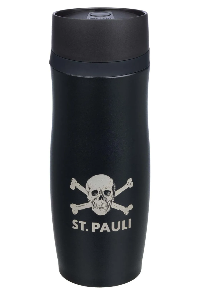 Für Fans, die ihren Kaffee oder Tee auch unterwegs immer heiß genießen wollen: Der FC St. Pauli Thermobecher mit Totenkopf-Logo hält dein Getränk stundenlang warm oder kalt. Der doppelwandige Edelstahl-Becher ist nicht nur robust, sondern auch stylisch – in edlem Schwarz mit dem legendären Totenkopf-Logo. Dank des praktischen Verschlusses bleibt der Inhalt sicher verschlossen, ideal für unterwegs und den Alltag. Ein Must-have für jeden FCSP-Fan, der seine Liebe zum Verein auch im Alltag zeigen möchte.