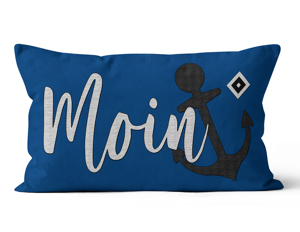 Kissen mit Stickerei „Moin“, Anker und HSV-Raute auf der Vorderseite