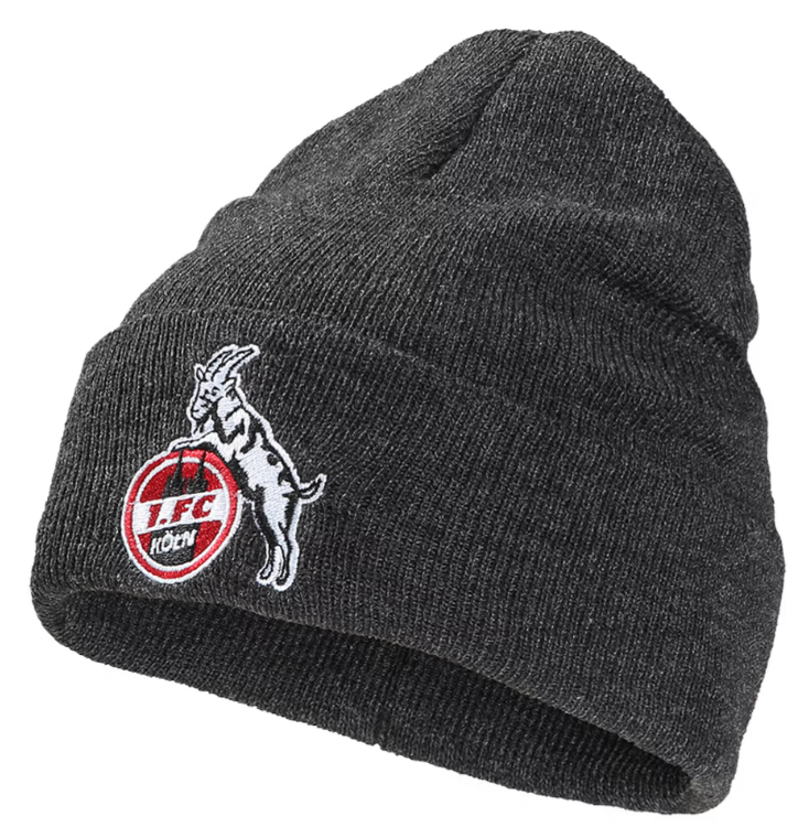 • Klassische Strickmütze in Anthrazit mit gesticktem FC Logo