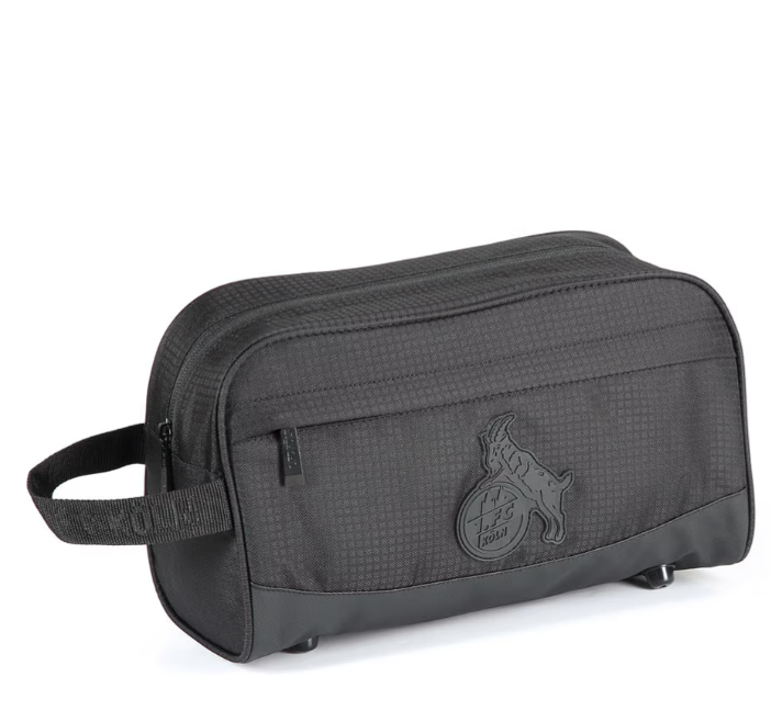 • Geräumiges Hauptfach mit innen 2 Steckfächern und 1 größeres RV-Fach, vorne mit zusätzlichem RV-Fach, mit seitlicher Trageschlaufe mit eingewebtem 1. FC Köln Schriftzug, Standfüße
