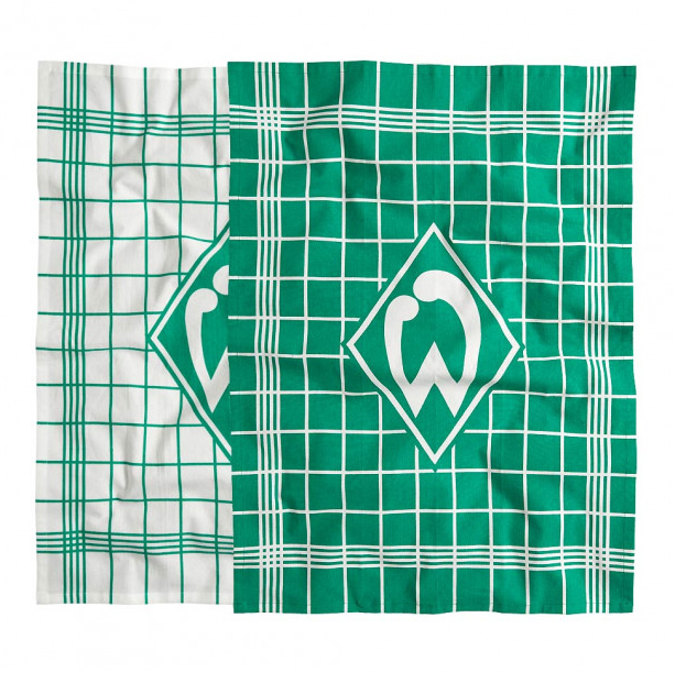 Das praktische 2er-Set besteht aus zwei verschiedenen Designs: In den Vereinsfarben Grün und Weiß gehalten werden damit in jeder Küche vereinsverbundene Akzente gesetzt. Zusätzlich dazu sich auf beiden Tüchern unsere Werder-Raute, die jeweils auf der grünen und auch weißen Variante zu finden ist.